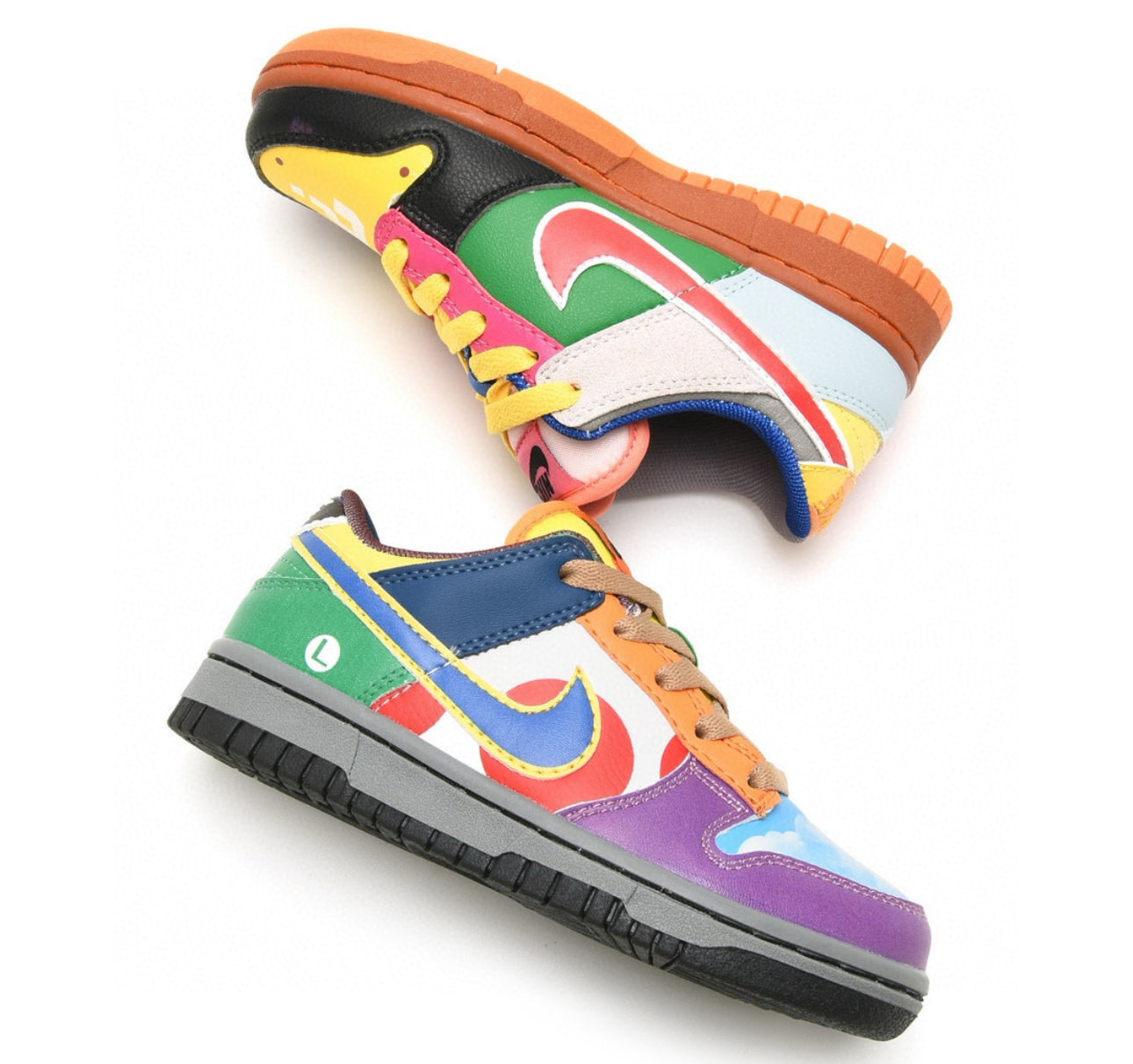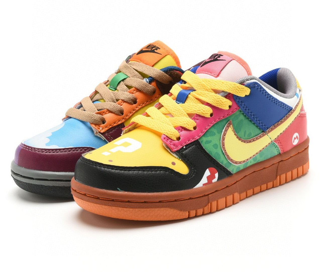 .Nike Dunk Lo custom Sneakers made with premium leather and features custom Mario Kart graphics on both shoes